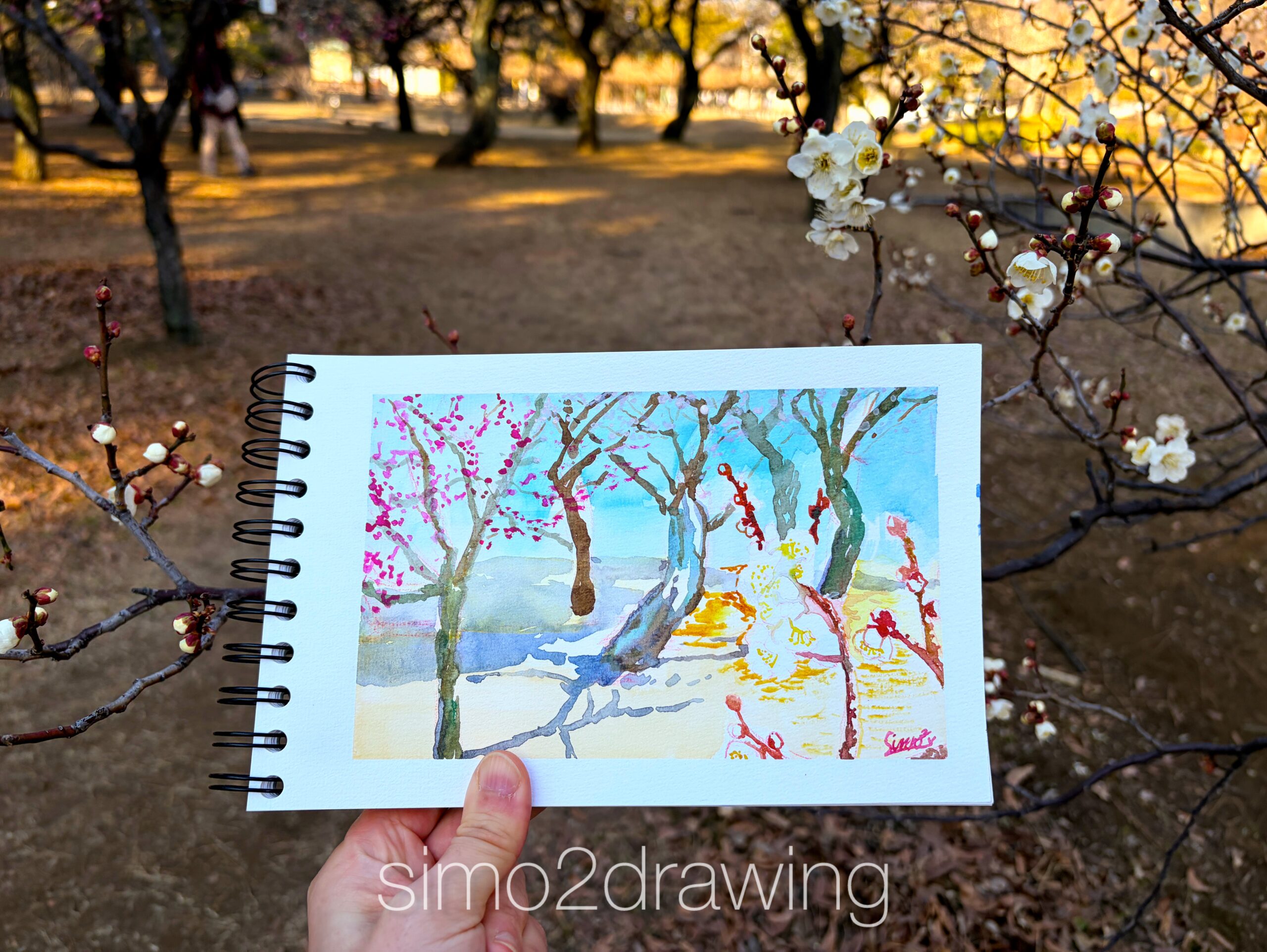 小金井公園の紅白梅が満開スケッチ