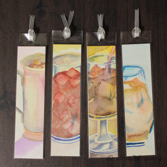 水彩原画しおり『アイスコーヒーのしおり』 – 頭の上のパンダ – BOOTH