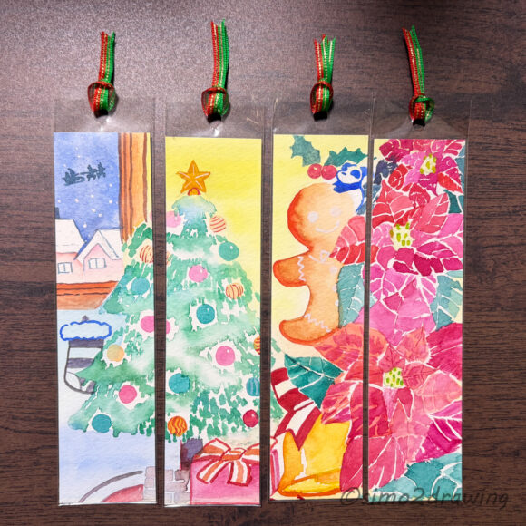 HOMEWorks-watercolor クリスマスのしおり 2025 2025-12-102026-04-11 Works-watercolor 目次 [ open close ] BOOTH使用画材 BOOTH クリスマスのしおり 2025 – 頭の上のパンダ – BOOTH①クリスマスイブ ②クリスマス ③ジンジャークッキーとベル ④ポインセチア 透明水彩 しおり部分 40mm×約160mm 紙の部分 40mm×約150mm 使用画材 透明水彩(シュミンケ ホラダム) 透明水彩のメインパレット2026年に1度、誕生月の2月にメインパレットを見直しています。誕生月なのは、その月に新しい絵の具を買うのを楽しみにしているからです。(自分への誕生日プレゼント)あまり使わなかった色を外し、使いたい色や使ってみたい色に入れ替えています。 ステッドラー(STAEDTLER) 色鉛筆 24色 水彩色鉛筆 カラトアクェレル 125 M24 ¥4,439 (2026/03/22 00:29時点 | Amazon調べ) Amazon 楽天市場 Yahooショッピング メルカリ ポチップ ホワイトワトソンブロック HW-302 超特厚口 F2 15枚 ブランド登録なし ¥1,940 (2026/03/16 23:08時点 | Yahooショッピング調べ) Amazon 楽天市場 Yahooショッピング メルカリ ポチップ 3本の木が公園遊具守ってる感じがしてかっこよかったスケッチ 兼六園とてもいいところだったスケッチ