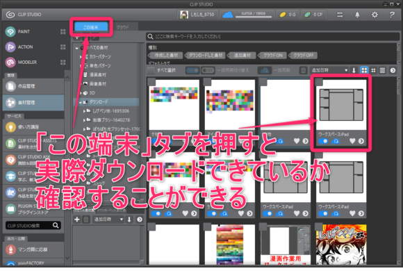 - 「PC版クリスタ」のワークスペースを素材登録する