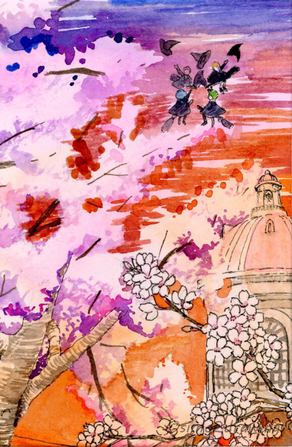 昨年も桜を描いているのですが、リベンジできたかなと思っています。夕日を描くのも、たのしかった。