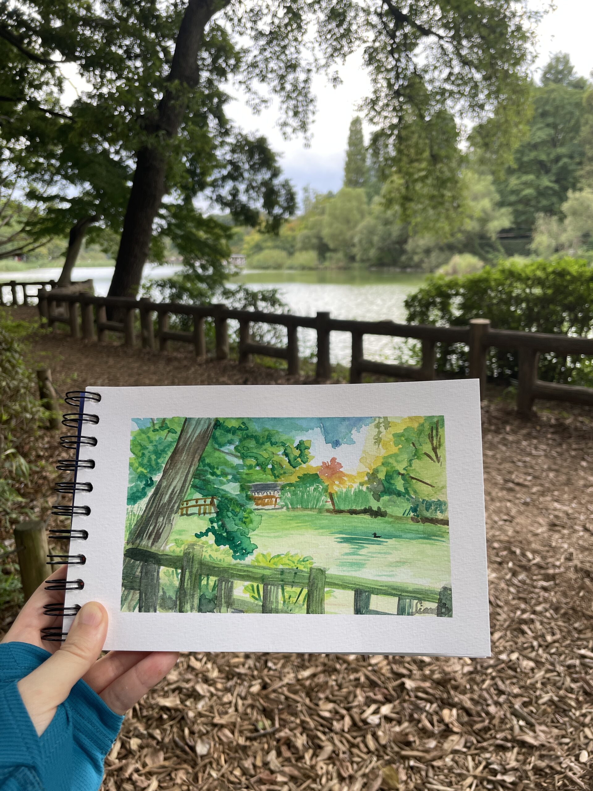 井の頭公園で雨降ってきちゃって一時中断スケッチ