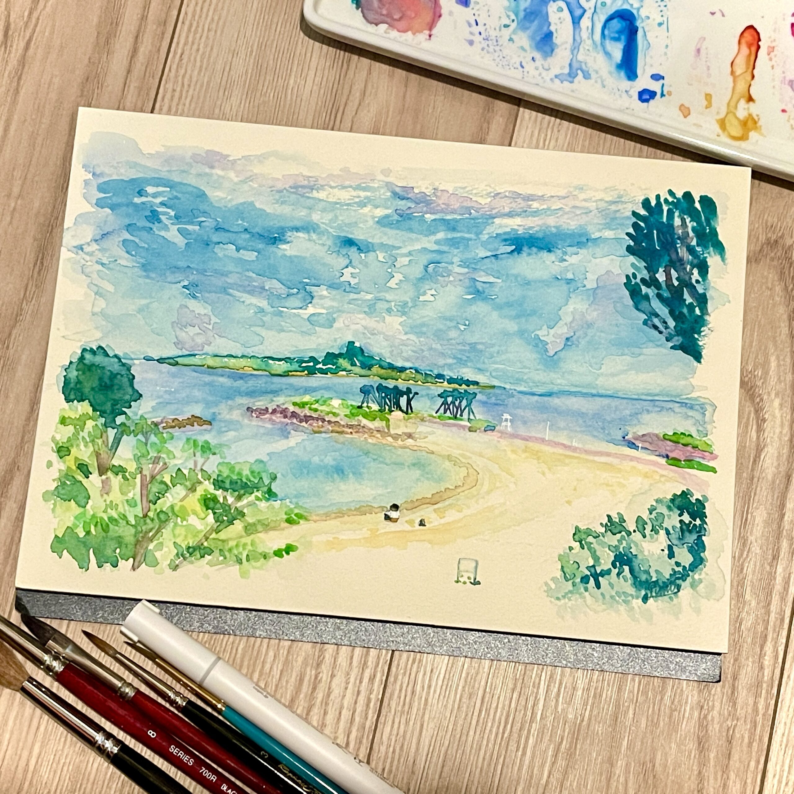 ウラバナシ 家族で行った沖縄で遊んだ海岸を描きました。 ダンナがひとり時間をつくってくれて、ジュニア…